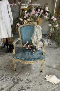 ナポレオンブルーが優雅なアーム付きルイ16世様式のフレンチチェア