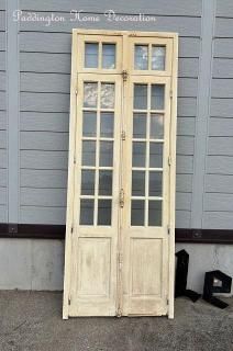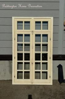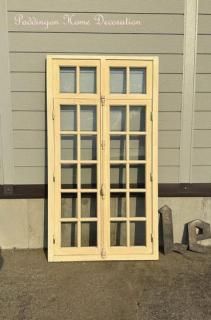 シャビーな木枠付きのグレモン錠フレンチアンティークウィンドウ
