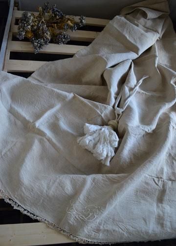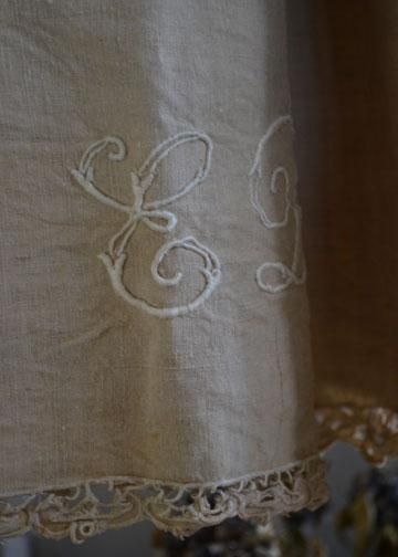 その他商品説明 | フランスの由緒ある家庭の嫁入り道具として愛用され受け継がれてきた、モノグラム刺繍が施されたヴィンテージリネン。天井の高いお部屋にも十分な大きさで、窓辺のカーテンや部屋の間仕切りにパーテーションのように使ったり家具カバーやベッドカバーにと、アイデア次第で取り入れたい、モノグラム刺繍のヴィンテージリネン。 |