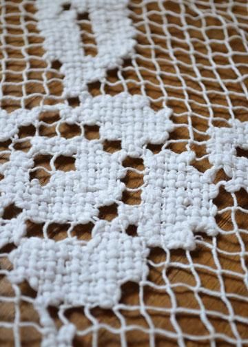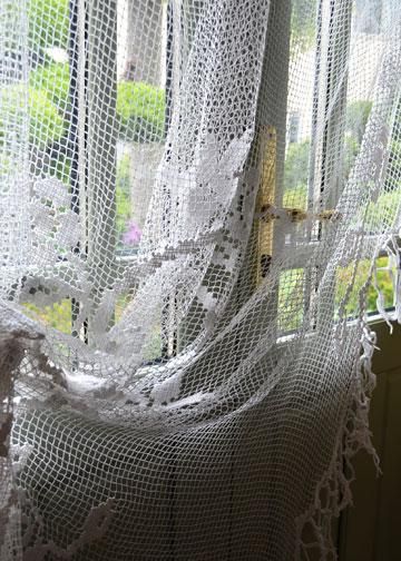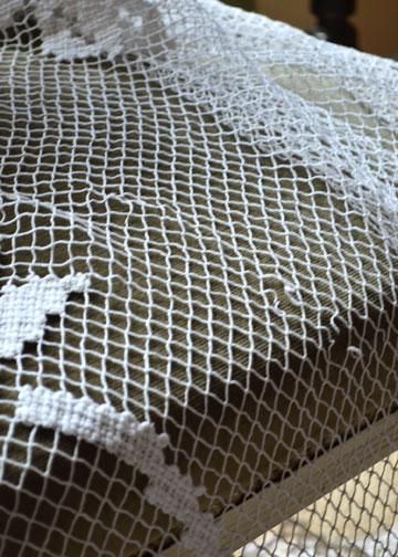 | その他商品説明 | 透け感のある大きなフィレレース。フラワーモチーフが網目を埋めるように手編みで施され、スカラップになった上下にはフリンジ。パネルカーテンとして吊るしたり、デュヴェカバーとしてベッドを飾って。使用されていた為、数か所しみ、ほつれあり、年月の経過した雰囲気。 |