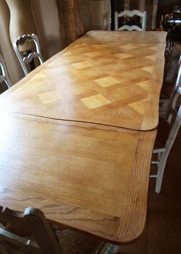 | 素材/材質 | オーク材製のルイ15世ダイニングテーブル。両サイドが引き出せるイクステンションテーブル。天板3枚 。約60kg | |