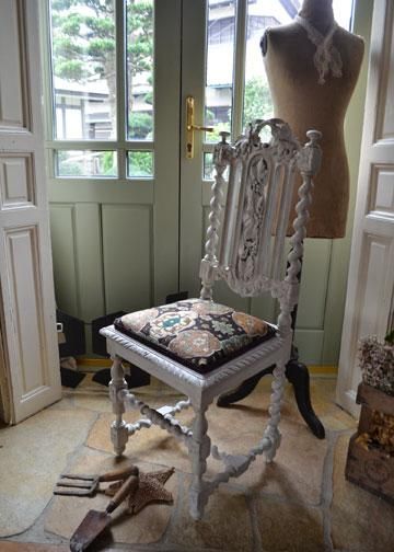 | ご注意事項 | 【海外直輸入中古品】使用されていた古い物の為、表面の傷やすれ、若干座面のほつれなどあり年月の経過した風合いです。左のギボシ飾りに欠けあり。がたつき等調節済み。極力ビス等を使わず組んである華奢な構造の為、乾燥などによる木の歪みにより、使用する内にがたついてきた場合は涙石などで調節して下さい。モニターの発色の具合によって実際のものと色が異なる場合がある。 |