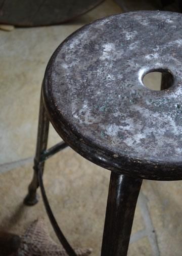 | 素材/材質/総重量 | メタル製に錆のブラウン、グリーンとホワイトのペイント跡が残ったMIXカラーの味があるスツール 。 |