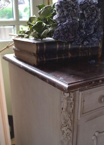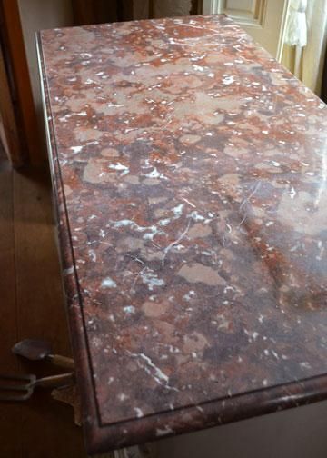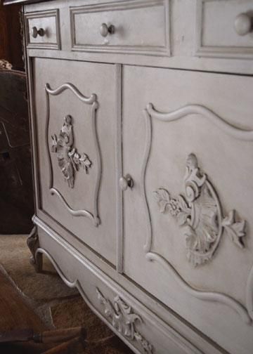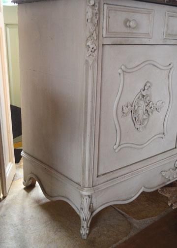 | その他商品説明 | ロカイユやアカンサス彫刻が立体感のある陰影をうむホワイト塗装に大理石天板が気品あるウォッシュスタンド。立体的なパネル扉には花とロカイユの彫刻が曲線モールディングで囲まれ、コーナーや脚先には花とアカンサスの彫刻、羊のヒズメを模したカブリオールレッグの曲線が優雅なルイ15世デザインです。マーブルの艶がディスプレーを引き立てるディスプレーサイドボードやダイニングのカップボードとして。もちろん収納力もたっぷりなルイ15世ウォッシュスタンド。使用されていた古い物の為、錆等が出て年月の経過した雰囲気。 |