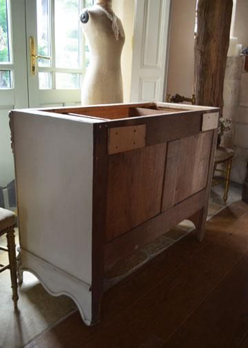 | 素材/材質 | 木製にホワイト系塗装、天板は大理石が乗せてあります。引出2か所、ボトムは棚板無し。 |