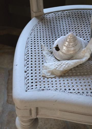 深く彫刻されたフレームにケイン編みが涼しげなロココ調チェア