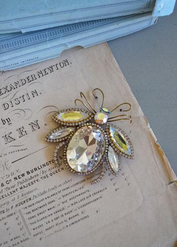 大きなクリスタルガラスがキラキラ輝くバグのブローチ