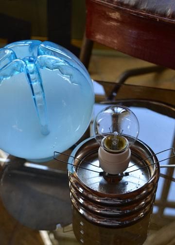 ![]() イタリアのMAZZEGA 製のヴィンテージブルーガラスグローブランプです。 |