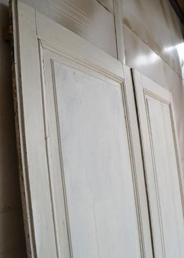 | その他商品説明 | 年月を経た真鍮色の装飾的な金具がポイントとして残っています。シンプルでクラシカルなオーク材製フレンチパネルペアドアです。 |