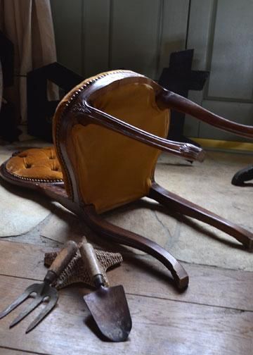 | サロンや客間の待合室などで腰掛ける椅子としてデザインされたフレンチサロンチェア。曲線的に締まっていく脚元の少し小さめな座面と、トップや座面まわりには花とアカンサスリーフ彫刻、クッション性のあるファブリックが座り心地を快適にして。女性らしいデザインとシルエットで古き良きパリの部屋の印象作りに活躍のフレンチサロンチェアです。 | ![]() | ||||||||||||||