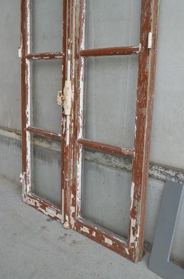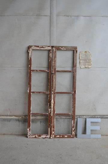 備考木製フレーム、鉄製グレモン錠付きの両開きペアウィンドウ。取り付け金具類はありません。