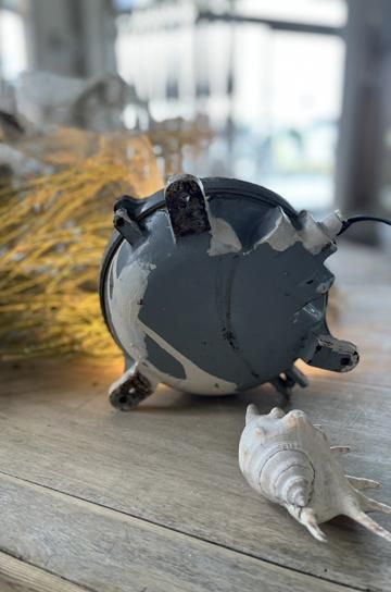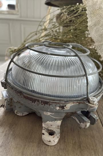 | フレンチアンティークのインダストリアルなカプセルライト。船舶や工場、公共施設などの、頑丈さが求められた外灯としてデザインされた、アーバンライティング用カプセルライトです。ずしりと重厚感のある鉄製フレームに、ぽってり厚いガラスカバーにはプリズムガラスのすじが入って、より明るく見える様に光を拡散してくれます。さらにガラスを保護する為の鉄格子が渡され、明りを付ければ格子状の影を落としてムードある雰囲気に。ガラスの中央にフランスAMIENのメーカ名の”Mapelec”が刻まれたインダストリアルの確かなブランド品のファクトリーの照明です。大きさも手ごろな玄関に、又、水周りの照明としてシャワー室もオシャレに魅せるアンティークな照明です。しっかりとパッキンで雨も入りにくい作りで甲板の照明として、船舶でも、大活躍間違いなしの照明です。ショップの照明や、玄関ポーチやエクステリア、もちろん室内の壁付け照明としても。錆びかけのマットな風合いが味のある、シンプルで機能的なインダストリアルカプセルランプです。 | ![]() | ||||||||||||||
