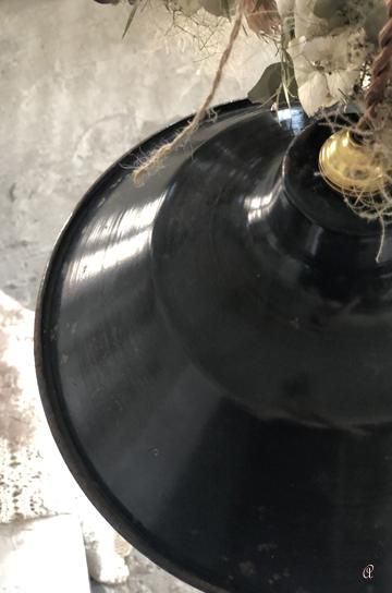 ![]() フレンチアンティークのブラックエナメルペンダントライト。フランスではブラックと藍色がアンティークとして人気です。こだわって作られた古い照明のさりげない魅力が楽しめます。 | ![]() シェードの内側はホワイトで、ほどよく光を拡散してくれます。内側には黒い点があり、新品にはない経年を経たホーローの素材感があります。 | ||||||||||||||