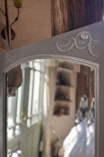 美しいカーヴィングとフランスらしいマットグレーペイントのフルレングスミラー