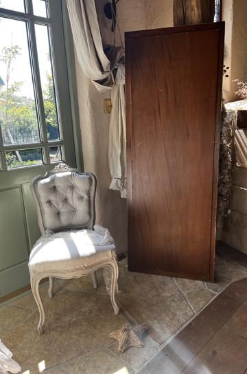 年月を経過し古びた風合いのカーヴィングにフランスらしいマットなグレーペイントがシャビーシックな雰囲気です。