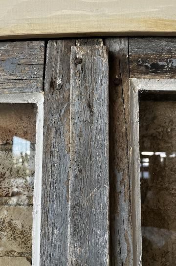 ![]() 年月を経過したペイントと金具の錆色が混ざり合ってシャビーな風合い。アンティークならではの温かみのある窓辺が広がるシーンにぜひ取り入れたい。 | ![]() 木枠格子の透明感と風合いを生かすために、カーテン無しでこのまま使ったり、撮影スタジオやショップの窓としても人気。 | ||||||||||||||