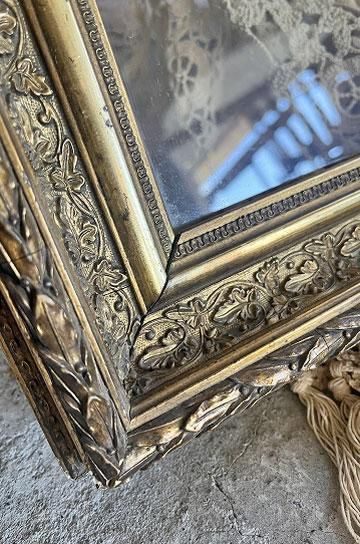 ゴールド塗装が年月を経過し、落ち着いた輝きとなった風合いはアンティークならではで、インテリアに優しく馴染んでくれます。
