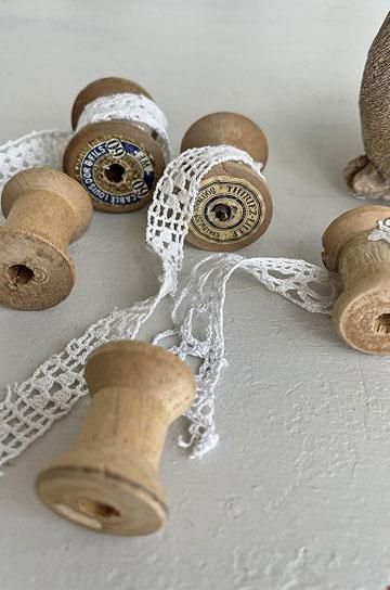 クチュリエ風ディスプレーに人気のアンティークボビンスレッド。アンティークレースや、古い刺繍糸等のコレクションと合わせてディスプレーすれば、世界観が一層広がって。