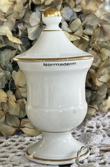 ![]() ファーマシーや病院のディスプレーとして、または世界最古の薬局サンタマリアノヴェッラの様にルネサンス期の薬屋さんから始まったコスメやハーブ、ヘルスケアを思わせる、古のアンティーク壺が並ぶショップディスプレーにも、パルファム、ソープ、クリーム、ハーブ等と相性の良い世界観を持ったポットです。 | ![]() ずしりとした重厚感と、100年以上経過した古い手作り陶器の風合い、美しいラベルに引き込まれる、フレンチアンティークのファーマシーポットです。 | ||||||||||||||
