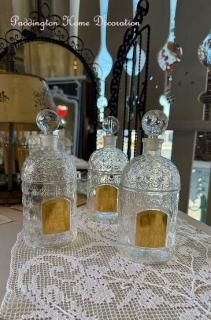 イタリアンアンティークのガラスドロップシャンデリア。ガラスドロップがスワッグの形で2連になっているゴージャスなシャンデリア。アームの付け根に透明の花模様がくくられて、透明のビーズとしずくの透明とパープルんもコンビネーションで美しいアンティーク4灯シャンデリアです。細身の真鍮製フレームはすらっとエレガントな曲線でふんわりと膨らんで、シャンデリアのシルエットを作り出しています。フレームやアームから垂れるのは、クリアの花ビーズに留められた、小さなクリアガラスビーズ。優雅に渡されたビーズチェーンからすき間無く下げられたパープルと透明感のあるドロップが豪華さを増しています。トップから3段に細い真鍮からドロップのしずくが重ねられてドロップ型シャンデリアが光を反射してキラキラと輝きます。くるんとスクロールしながら広がる真鍮アームの先には真鍮ロゼッタと、花の形の真鍮の受け皿。ダイニングテーブル上や、リビング、私室などの照明として。またはショップやスタジオの装飾照明としても、印象的な空間に。明りを付けていても消している日中でもインテリアとして存在感を発揮してくれる、アンティークシャンデリア。部屋の雰囲気造りに取り入れたい、イタリアンアンティークのガラスドロップシャンデリアです。