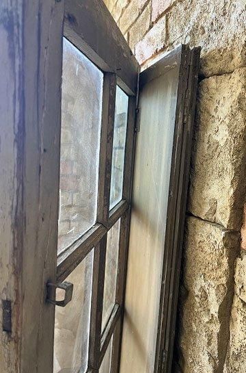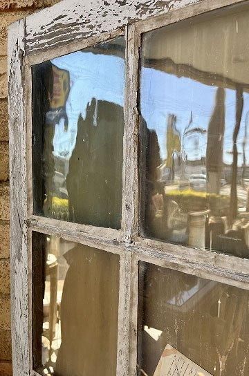 ![]() 格子ガラスの木枠はモスグレーのペイントが剥げかけて、オークの木目が見え隠れするシャビーなアンティーク窓です。 | ![]() 温もりのある木製の木枠は格子にエッジがそれぞれについて立体的な美しい木製窓。 | ||||||||||||||