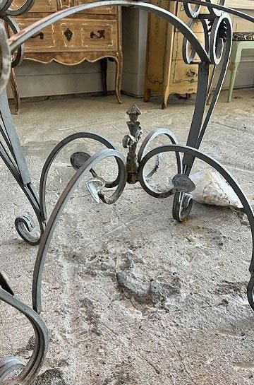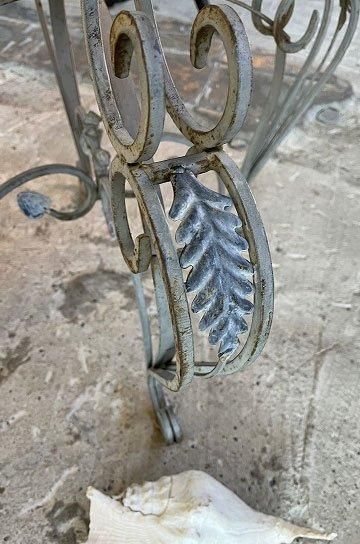 ![]() 天板には格子状にフォルクアートされて確かな職人の拘りを感じます。 | ![]() シャトーのパティオで皆なが寛ぐ場所として長い年月を過ごしてきたシャビーなアイアンテーブルです。 | ||||||||||||||