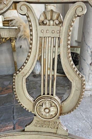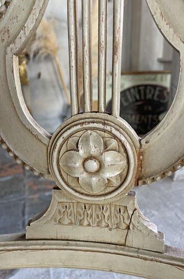 ハープモチーフの背が美しいハープルイ16世アームチェアc