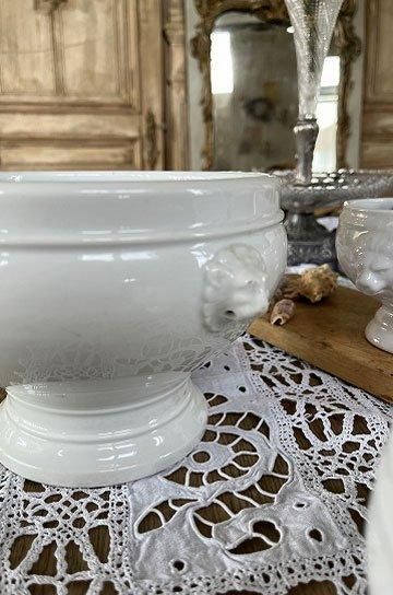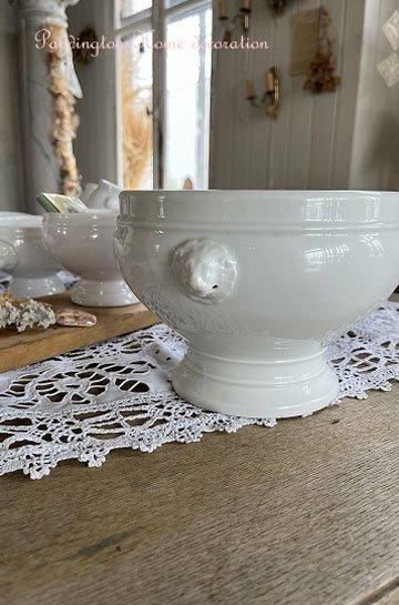 ![]() ぽってりと味わいのある古い陶器ならではのライオンヘッドのアンティークスーピエールです。 |