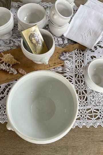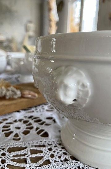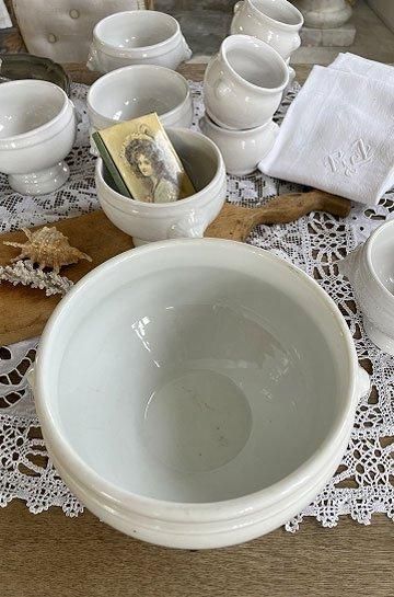 ![]() フランスではキッチンやダイニングのキャビネットに白いスーピエールを何個も並べて飾っていたり、迫力のあるスーピエールとして、存在感を発揮してくれます。 | ![]() 勿論ビストロでスープを入れて、テーブルでサーブするスーピエールですが、こちらは少し大きめなサイズで、4〜5人用位で使えそうなサイズです。 | ||||||||||||||