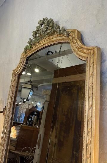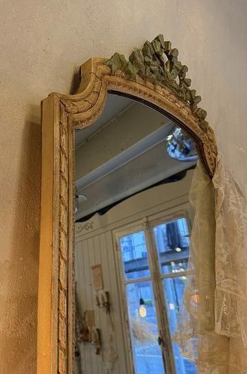 ![]() お屋敷の壁面を飾っていたマントルピース上やコモード上、サロンルームや客間の装飾等として使われていた、大きめな壁掛けモールディングミラーです。 | ![]() 立体感があって迫力のある豪華なモールディングは、ルイ16世スタイルの人気のリボントあかんさすの彫刻ががシンボリックなアンティークミラーです。 | ||||||||||||||