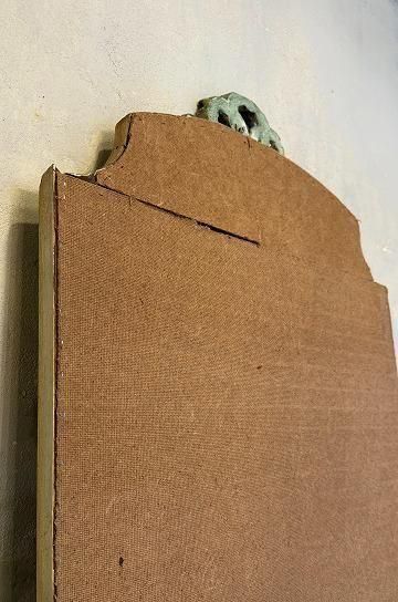 ![]() 立体的にフレームから飛び出した形のリボン装飾は山形のアーチのトップに装飾されています。 | ![]() フレームの付けにアカンサスリーフが両サイドに彫刻されてい織ます。 | ||||||||||||||
