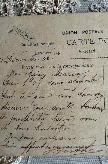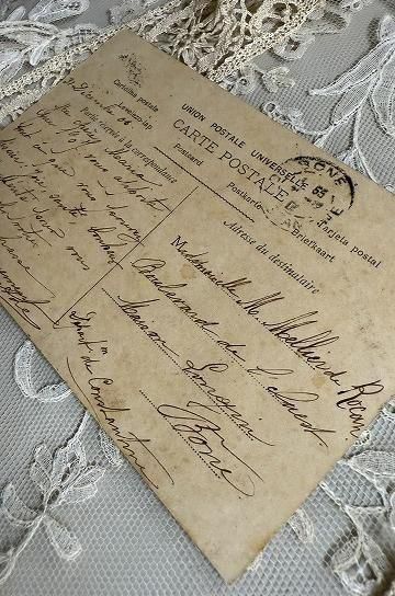 ![]() 裏面の手描き文字も美しく繊細です。ディスプレーに加えるだけでぐっとアンティークな雰囲気が作り上げられる、フランスアンティークのポストカードです。 |