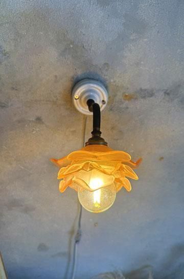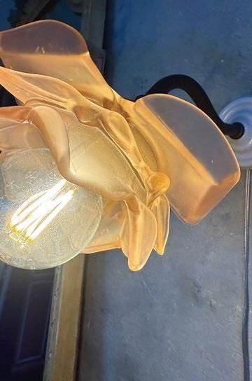 ![]() フリルシェードのガラスはマットなピンクのフロスト加工されてクラシックな灯りの趣。 | ![]() 玄関や廊下等、フレンチシックなインテリアに良く似合います。 | ||||||||||||||
