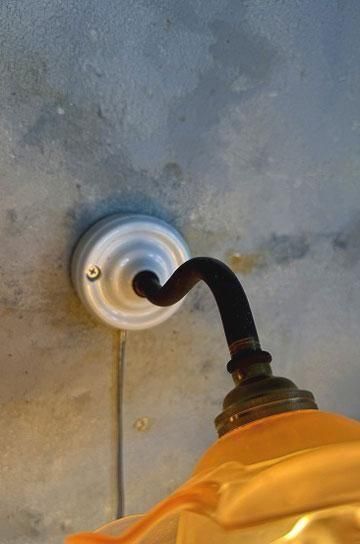 ![]() 壁の固定するプレートは、白い陶器製で壁面をクラシカルに飾っていた、シンプルで清潔感のある華やかなウォールライトです。 | ![]() 壁から真鍮のアールのブラケットアームが丁度良い角度で支えてくれて。 | ||||||||||||||
