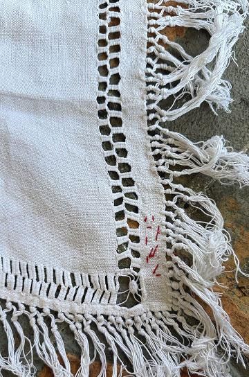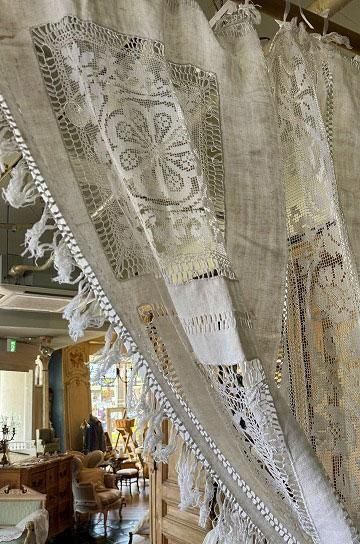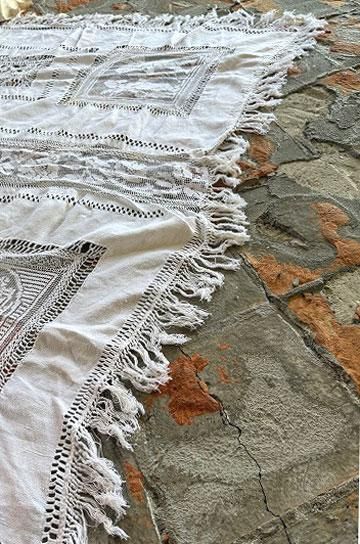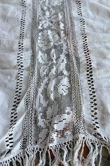 リネンから模様が透かされてくっきりと美しく映えるフィレレースです。