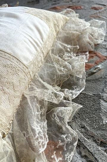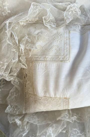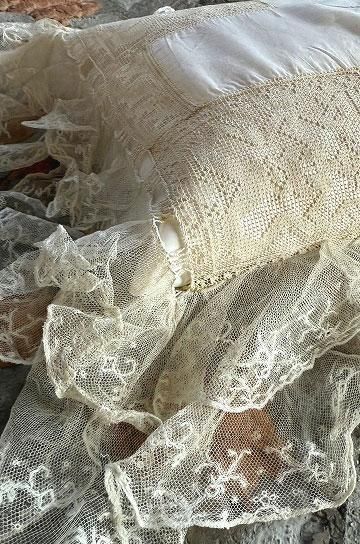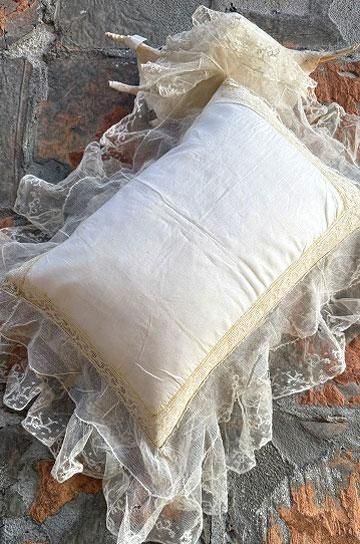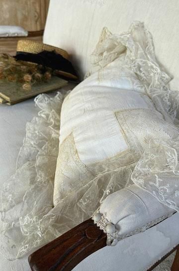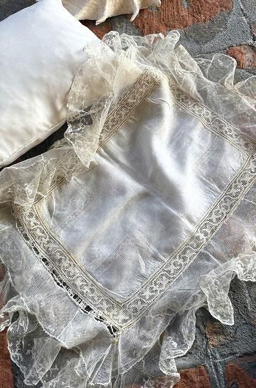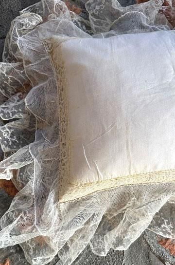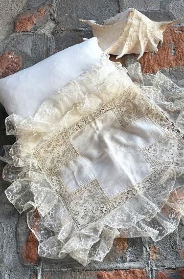 ![]() アンティークならではの年月を経過した風合いが雰囲気のある、フレンチアンティークのローンとチュールレースクッションです。 |