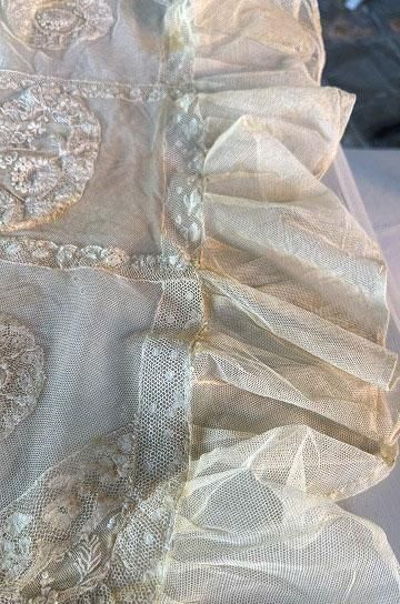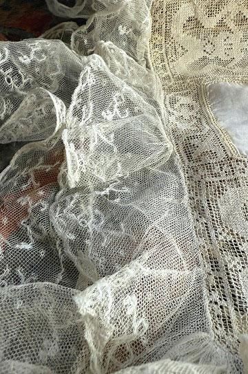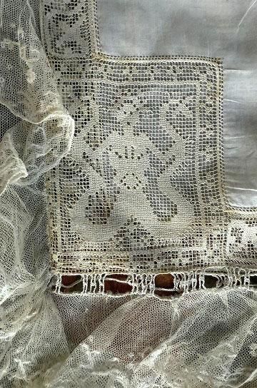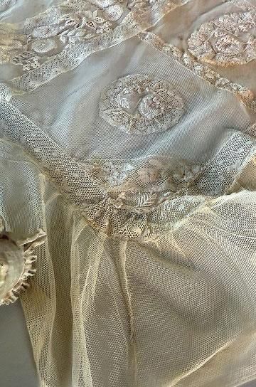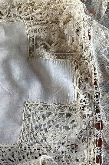 ![]() 透け感のあるチュールレースにボビンレースやクロシュテッチ刺繍が美しいアンティークレースです。 | ![]() パネルはコーナーと周囲を囲むマシーンフィレレースのアンテxィークレース。 | ||||||||||||||