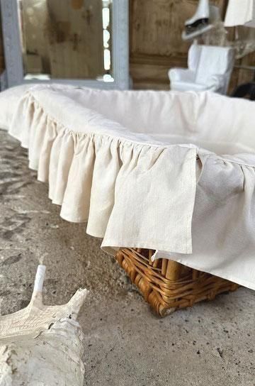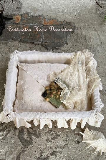 ![]() 20cmの低めのアンティークパニエで、ワンちゃん猫っちゃんのお昼寝ベッドとして。 |