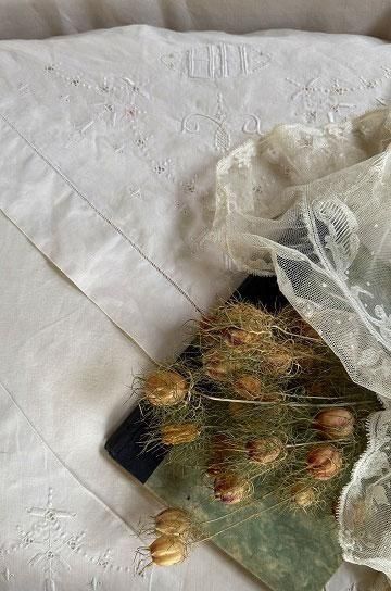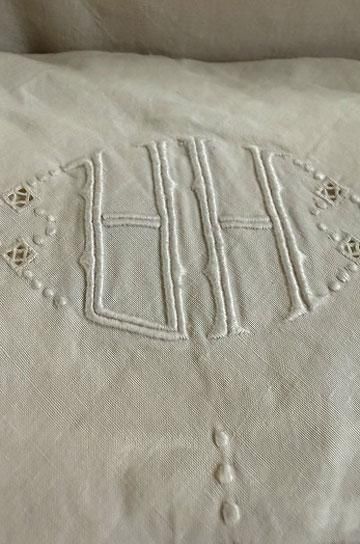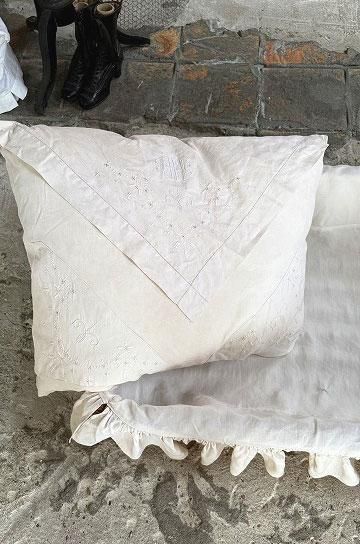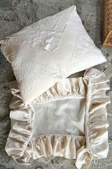 ![]() ”HとA”のモノグラムとカットワークされた繊細なデザイン野フレンチリネンで作られたクッションカバーです。強い日差しも優しくしてくれるアンティークレースです。 | ![]() 中芯はふんわりフェザーがセット。 | ||||||||||||||