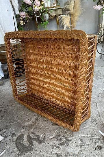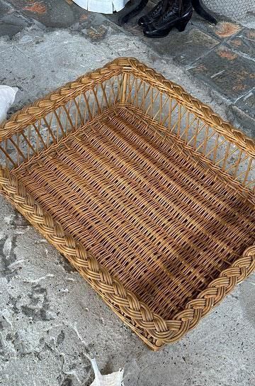 ![]() 平らで大き目の統制のフレンチパニエです。 | ![]() 縦シルエットはクロスして持ち手の淵には三つ編み状の使いやすい持ち手のアンティークパニエです。 | ||||||||||||||