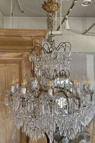 ![]() フランスの歴史あるシャトーの中で使われていたであろう、古くから大切に譲られてきたシャンデリア。 |