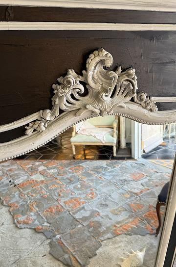 ![]() お屋敷の壁面を飾っていたマントルピース上やコモード上、サロンルームや客間の装飾等として使われていた、大きめな壁掛けモールディングミラーです。 | ![]() 立体感があって迫力のある豪華なモールディングは、ルイ16世スタイルの人気のアカンサスリーフ彫刻がシンボリックなアンティークミラーです。 | ||||||||||||||