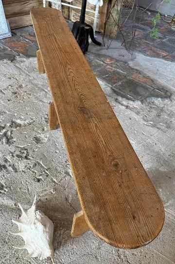 ![]() 無垢のパイン材1枚で作られた懐かしい雰囲気のするロングベンチ。。 | ![]() 使い込まれて、木目が透けて凹凸になった、古材の感触が楽しめるアンティークベンチです。 | ||||||||||||||
