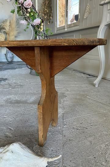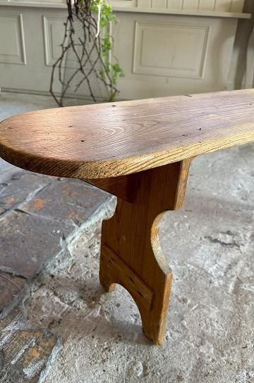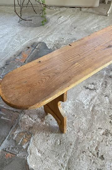 ![]() パインの一枚板の両サイドの先端が丸くカットされて、長年愛用されてきた心地良さが伺えます。 | ![]() 座面の高さは45cmで、ダイニングテーブルと合わせて、家族で過ごすベンチソファのあるダイニングチェアとして。 | ||||||||||||||