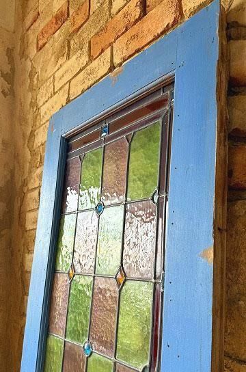 ![]() 木製フレームは、ステンドグラスに合わせてブルーに塗装された木製のフレームで一体感があります。 | ![]() 細長いデザインのステンドグラスは、格子状の鉛のリードで止められてクリアテキスチャーガラスが自然光を優しく取り込み、絵画のような世界観を創ります。 | ||||||||||||||