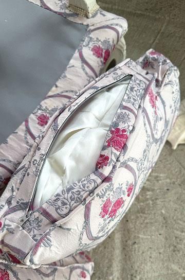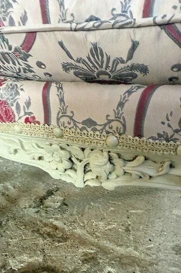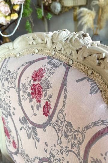 ![]() ひざ下の座面も曲線を描いて。センターにシンメトリーのローズが彫刻されて優雅な美しさを放つアンティークアームチェア。 | ![]() マットなホワイトがピンク色のセンチメンタルな落ち着きのある清楚な雰囲気。背もたれは光沢のあるジャガードがピンクローズとグレーのレリーフが交互に光ります。 | ||||||||||||||