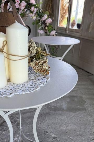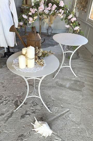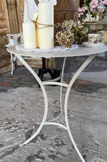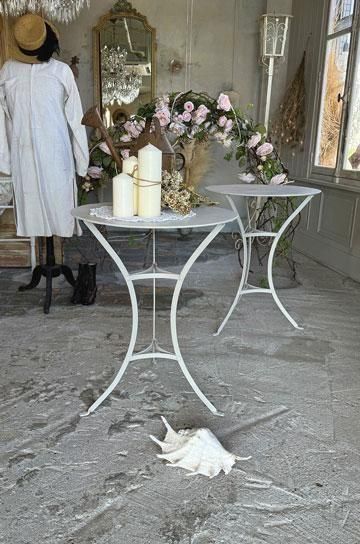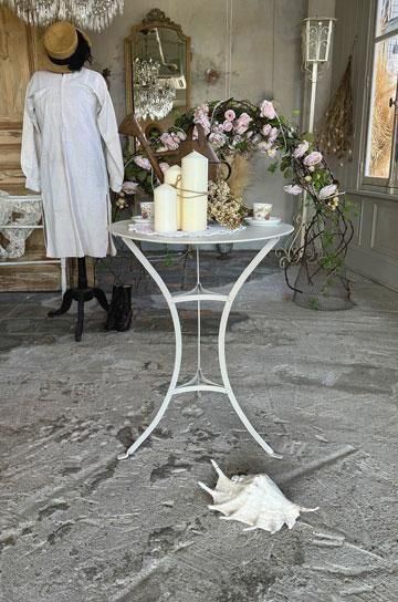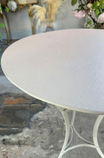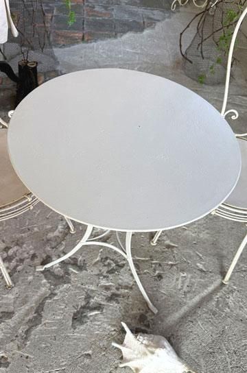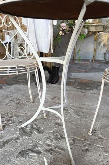 |  さり気なく置けるアイテムだからこそ、シンプルながら古びた存在感のあるアンティークを飾りたい、フレンチアイアンカフェテーブルです。 |