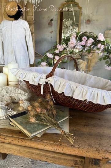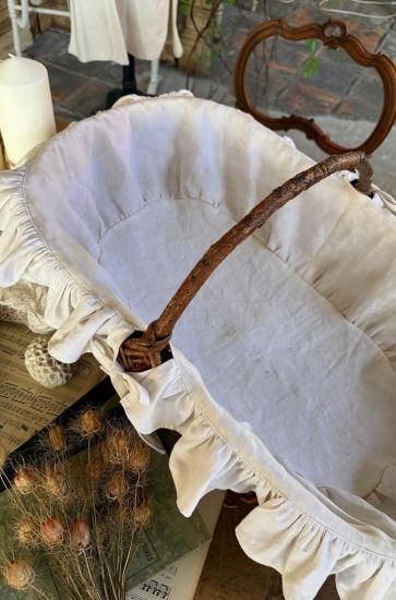 ![]() 大き目サイズが存在感のある、フレンチアンティークのリネンカバー付パニエです。 |