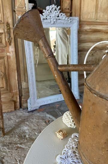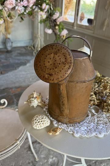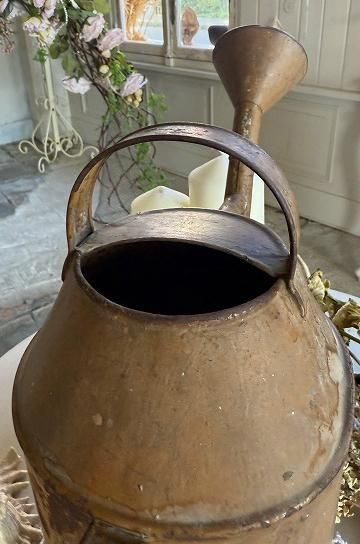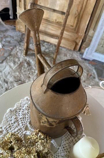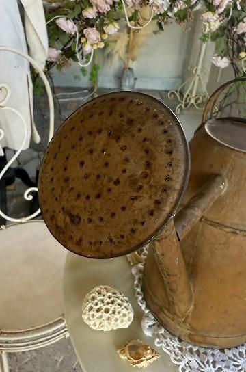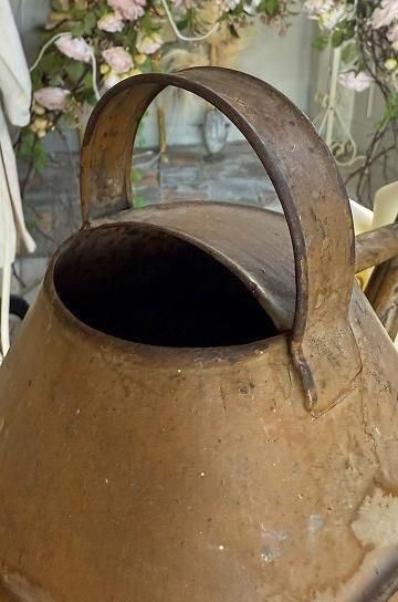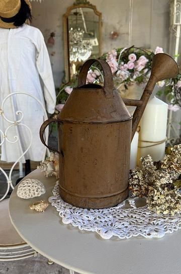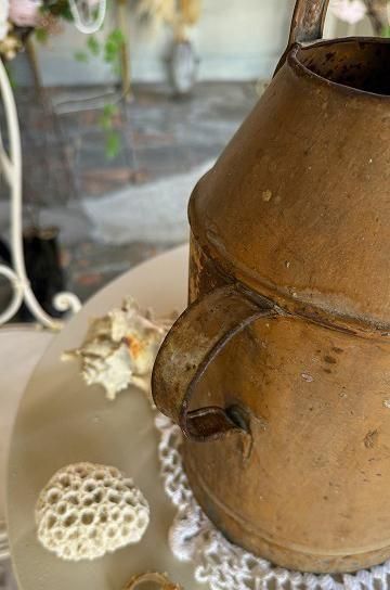 ![]() フレンチアンティークのアロゾワール (arrosoir)。水差しの口の上とサイドにある取っ手が納屋のオブジェの風景に似合うアンティークジョウロ。 | ![]() ブリキに塗装されたブラウンが味わいのあるアンティークの水差し。大切な家の道具として受け継がれてた哀愁を感じるブリキ製のアンティークのジョウロです。 | ||||||||||||||