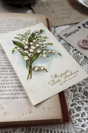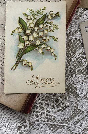 ![]() キャビネットの中やディスプレー空間を華やかに彩ってくれる、フレンチアンティークのスズランブーケのポストカードです。 |
